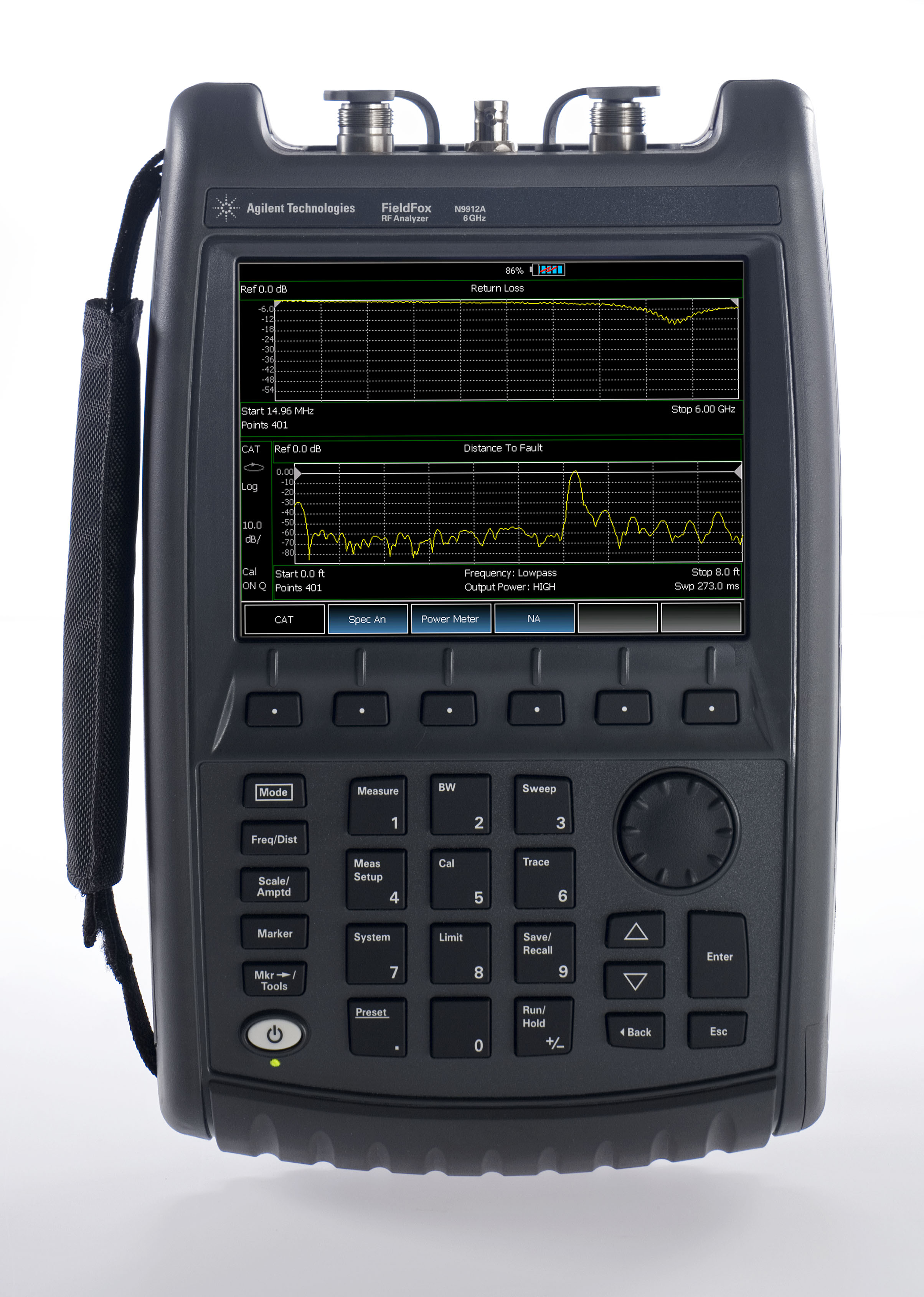 I am a bit of a test equipment junkie….it has something to do with working in the electronic measurement business for most of my career. There are many great pieces of test equipment out there but every once in a while, one comes along that really captures the imagination. Over the weekend, I got my hands on the new FieldFox RF Analyzer from Agilent Technologies. This analyzer is a combination 2-port network analyzer, cable tester and spectrum analyzer in one compact package. Add in an external sensor and it measures RF power, too. [Disclosure: I am employed by Agilent.]