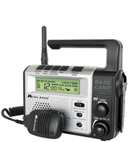 Searching around Amazon.com and a few other sites, I discovered that the Midland XT-511 Base Camp radio has a hand-crank radio that includes AM broadcast, FM broadcast, Weather receive and, yes, a GMRS 2-way radio. OK, it doesn’t work on the ham bands but the FRS and GMRS frequencies might be useful when things go dark.