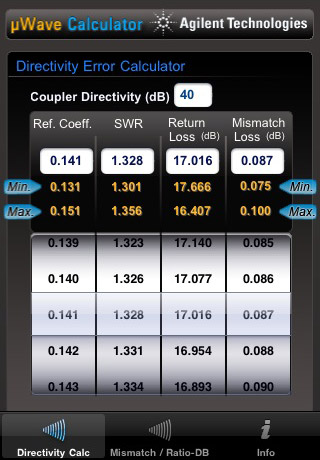 For the RF/microwave enthusiasts out there, you may recall the old HP Reflectometer Calculator that does conversions between SWR, Return Loss and calculated mismatch uncertainty.