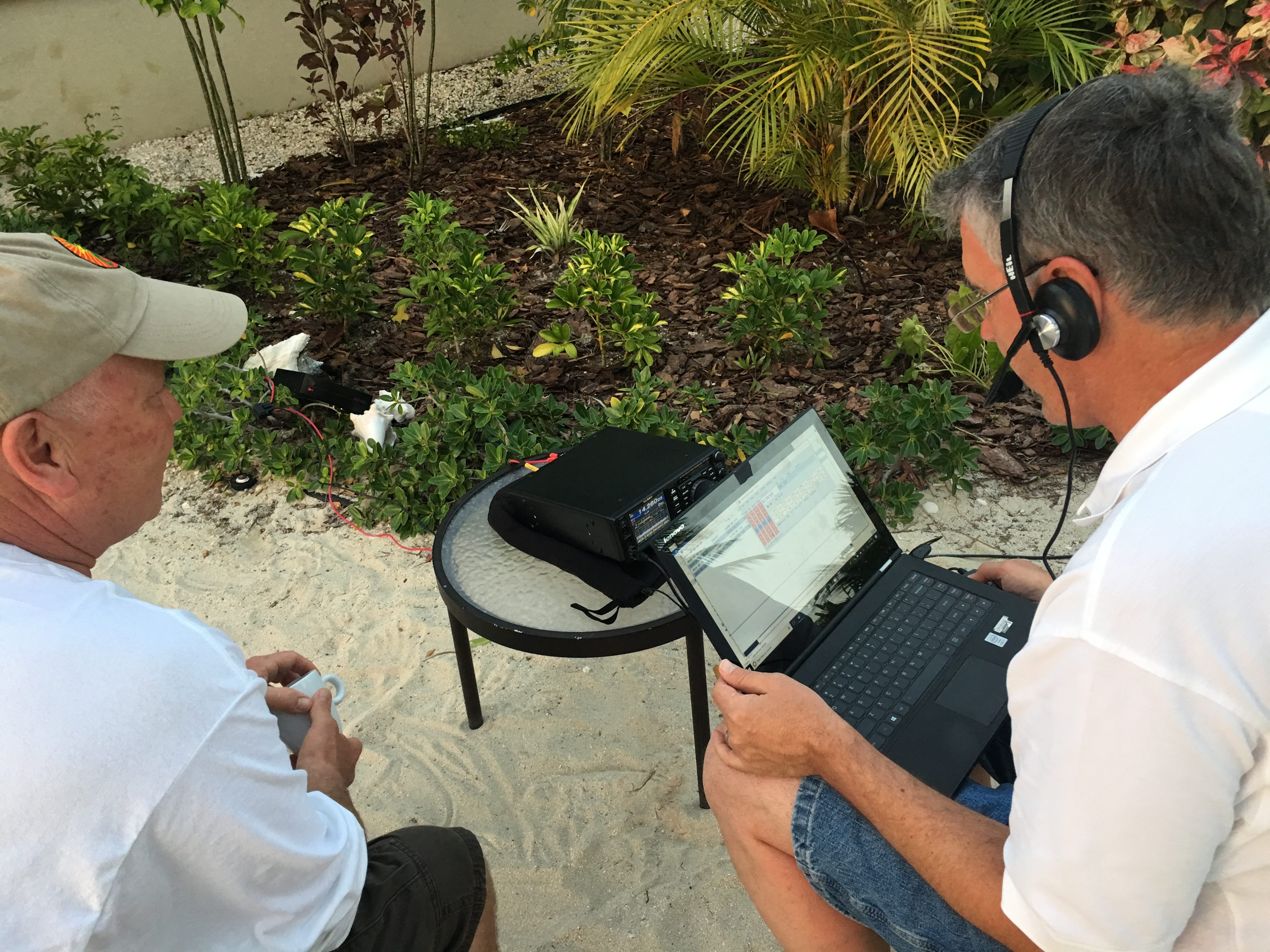 This turned out to be a great move. ZF1A has multiple towers with some very capable antennas. Like I always say: Never underestimate the power of using a large directional antenna on top of a big tower. Eden/ZF1EJ met us at the station (it is literally in his backyard) and helped us get situated. Our operating strategy was simple: use the highest HF phone band that had good propagation and work as many stations as possible. We were also prepared to use FT8 if things were really bad but that was not needed. It turned out that 15m was dead but 17m was open into North America and Europe, so we did most of our operating there.