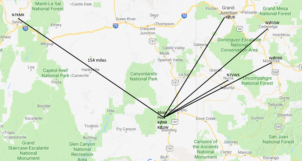Abajo Peak is an excellent summit for VHF/UHF propagation with a good radio horizon in all directions. There is a substantial radio communications site on top which did create some local interference on 2m and 70cm. Moving a bit away from the actual summit caused the interference to mostly disappear.