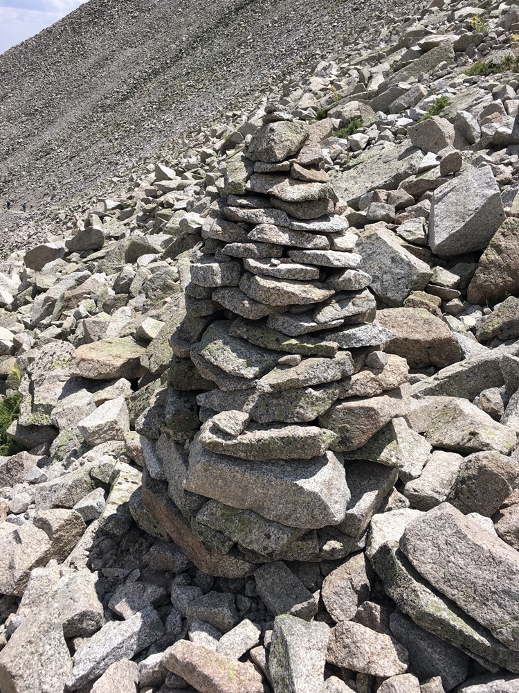 The trail starts out very distinct and is easy to follow. Later, the terrain turns to talus (fields of large rocks) which continues for the entire climb. In some spots, the trail fades and is difficult to follow. Even when you are “on the trail” you get to do a lot of rock hopping. There is a reason they call these the Rocky Mountains. By my GPS app, the distance was 2.1 miles (one way) with 2360 vertical feet.