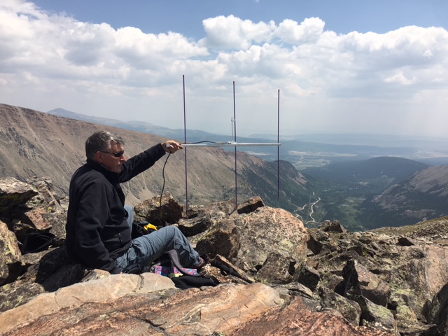 It was quite windy on top so we hunkered down behind some rocks to provide some shelter. Using the Yaesu FT-90 transceiver and the 3-element Arrow 2m yagi, we worked these stations without much trouble: W0BV, N0EMU, KN0MAP, W0DLE, KD0VHD and W9GYA. Our best DX was N0EMU near Calhan, CO at about 100 miles.