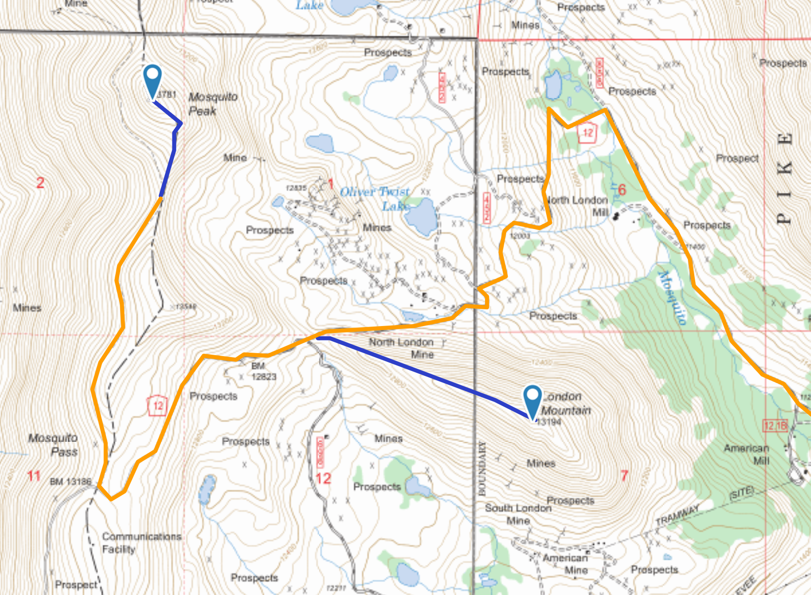 We drove the road to the pass from the east (via Highway 9, heading north out of Fairplay then turning west onto County Rd 12 / Mosquito Pass Road). Consult the Pike National Forest map for more detail.