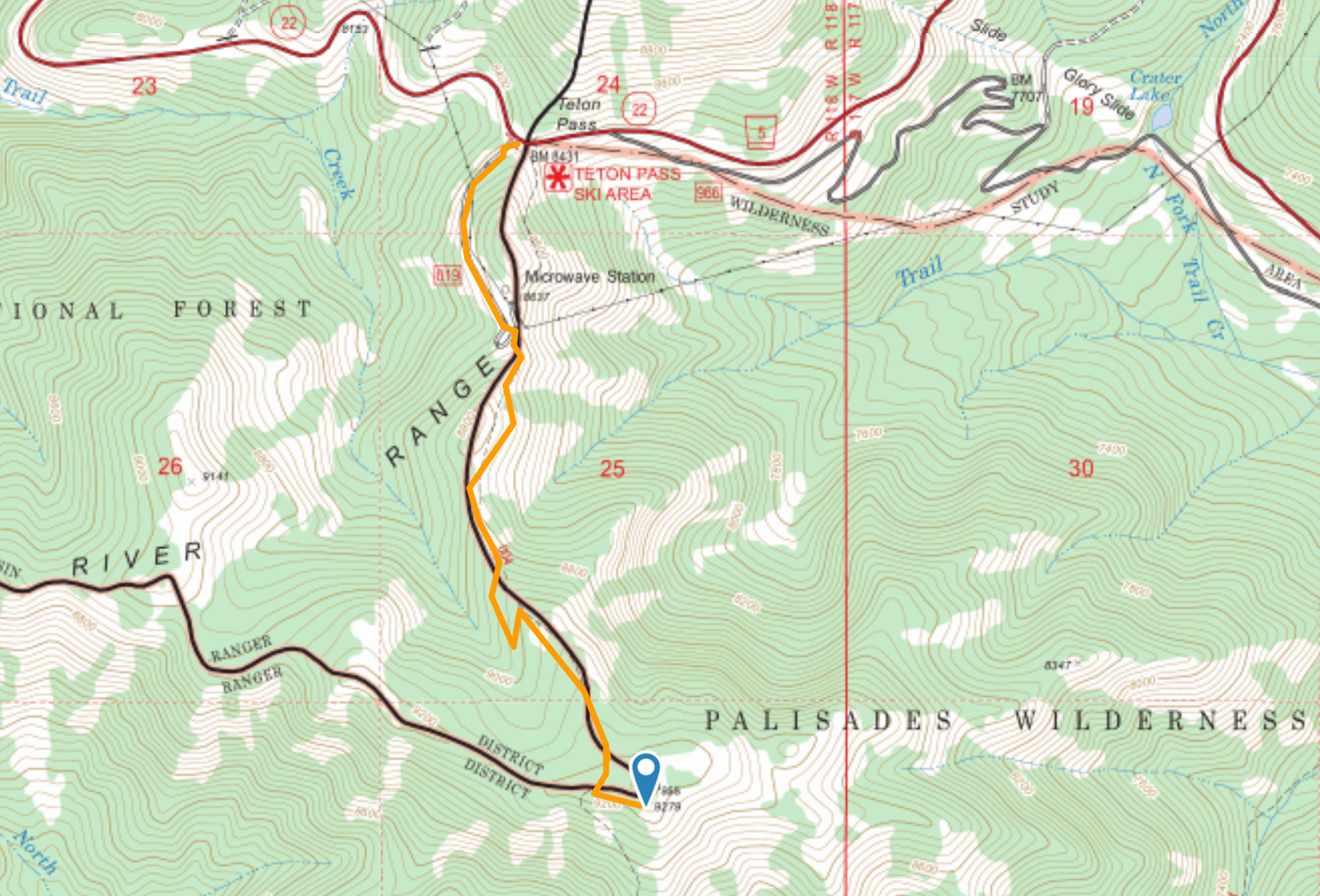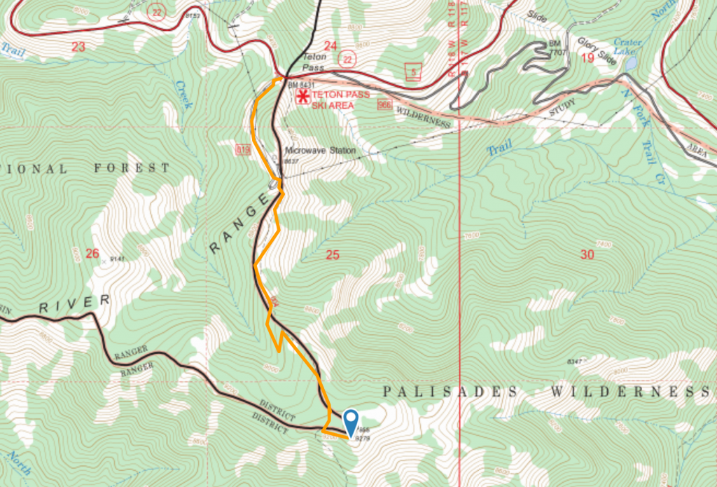 While exploring northwest Wyoming, Joyce/K0JJW and I were looking for a suitable mountain for a Summits On The Air (SOTA) activation. A little bit of research identified Pass Benchmark (W7Y/TT-122) as a good option. This summit is accessed from the Teton Pass trailhead, which is on a paved road (Route 22) heading west out of Jackson. There is substantial parking available at the pass and it appears to be a popular trailhead for hikers and mountain bikers.