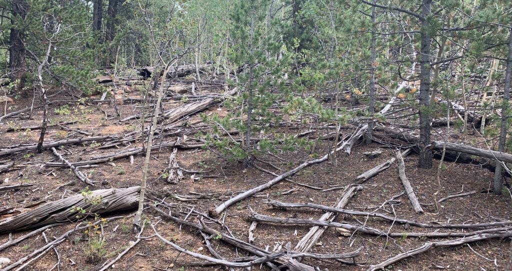 After our first bushwack adventure on this summit, we were not motived to activate this one again. However, using the Davis Meadow Trail has changed our opinion. (Thanks Walt/W0CP!) This route still has some offtrail bushwacking but it is not bad. We will be back!