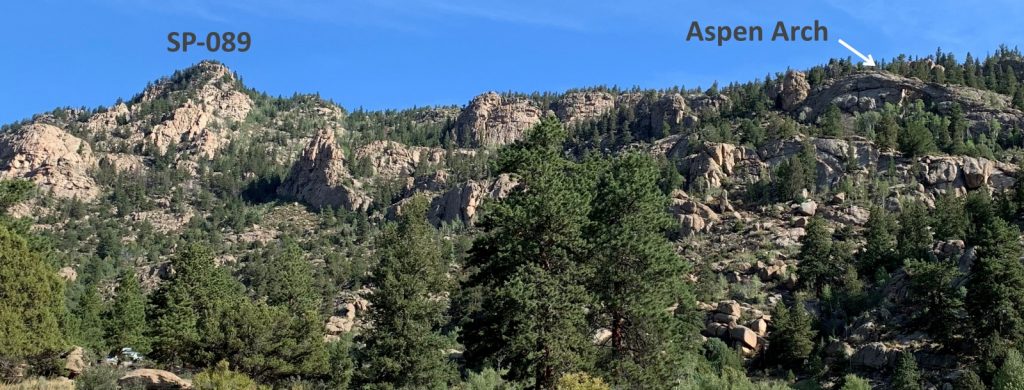 Just to the east of the unnamed summit is a natural arch, marked on some maps as Aspen Arch. We’ve hiked up the arch on numerous occasions, often with visitors from out of state. So we’ve started referring to this unnamed SOTA as Aspen Arch, to differentiate it from the other unnamed summits in the area.
