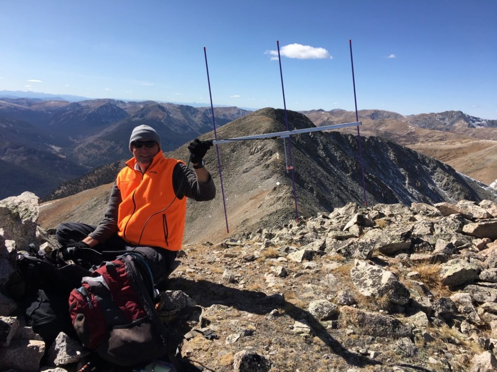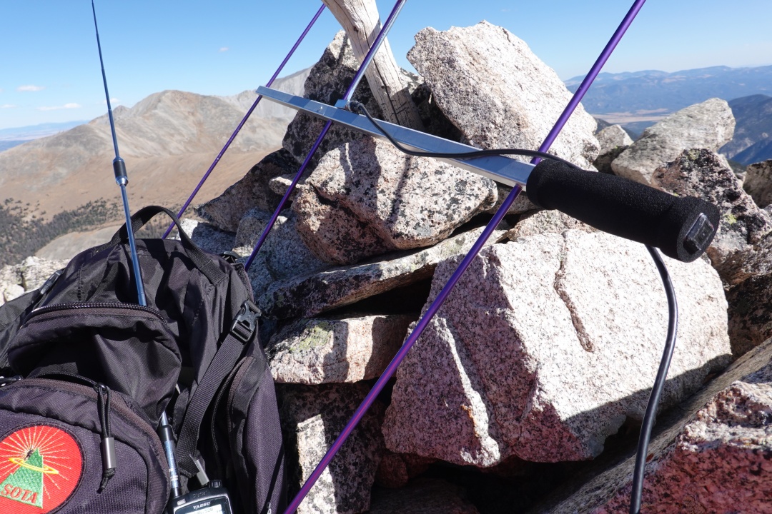 You never know what your gonna get on the first activation of a summit. On this one, it turned out to be a fantastic day. The weather was sunny, temperature about 40 degrees, a little too windy at times. Late in the season, we didn’t have to worry about thunderstorms moving in and blowing us off the mountain. I liked the combination of a good 4WD road, heart-pumping but not-too-difficult hike, a first-time SOTA activation and doing it all with my favorite hiking partner (and wife).