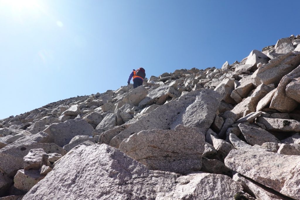 Yeah, about the talus. It isn’t any worse than other rocky summits in Colorado but it seemed to catch our attention, usually in the form of “ok, I’ve just about had it with this talus.” A contributing factor was that both Joyce and I had foot/ankle injuries in recent years. So our unofficial name for this summit became Talus.