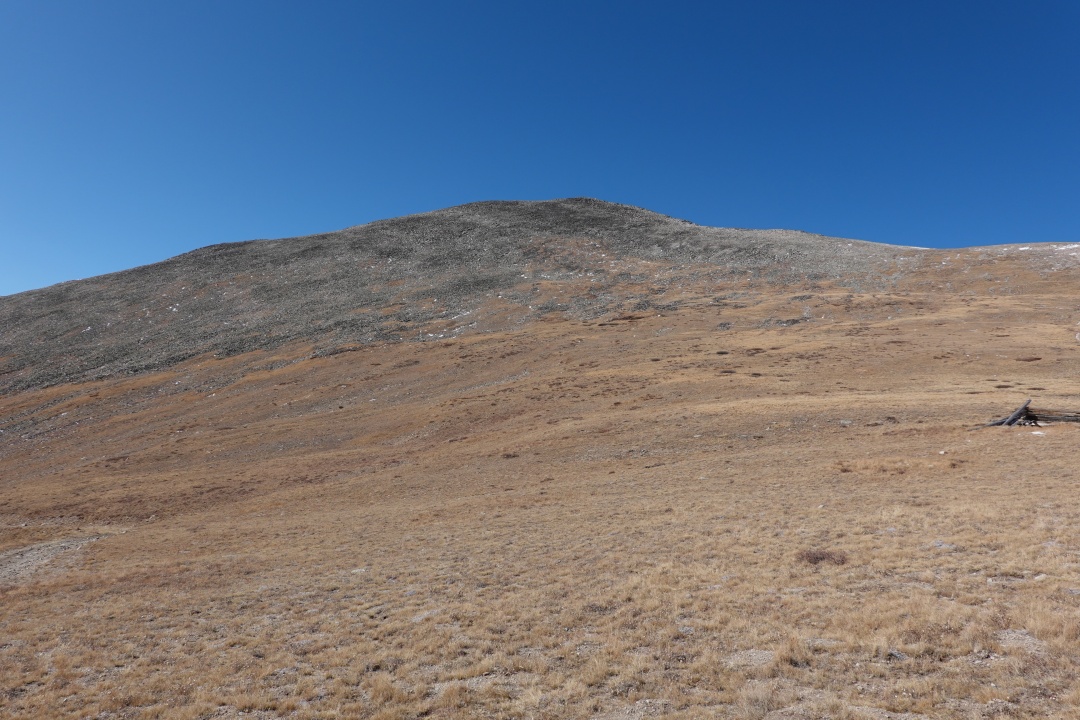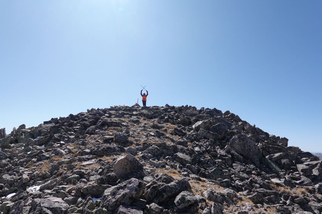We drove a bit past the saddle (where there is a small hut/cabin) and parked where a closed side road heads off toward the summit. We hiked up this closed road and then vectored off towards the summit. The hike was only 0.6 miles and 800 vertical feet. However, there was quite a bit of talus (rock debris) to climb over which really slowed us down. The hiking route does not seem critical but following the top of the ridge seemed to be good.