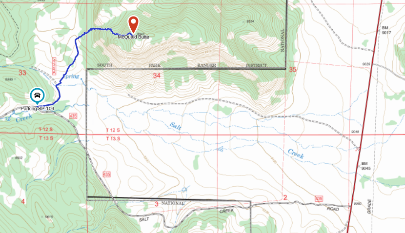 McQuaid Butte (W0C/SP-019) is a 9043-foot mountain near our cabin in Park County. Joyce/K0JJW and I activated it for Summits On The Air (SOTA) way back in 2013 but for some reason, we had not been back to it. The access road (Salt Creek Road, FS 435) is gated closed from January 1 to June 15 to protect wildlife habitat, so I suppose that is a factor.