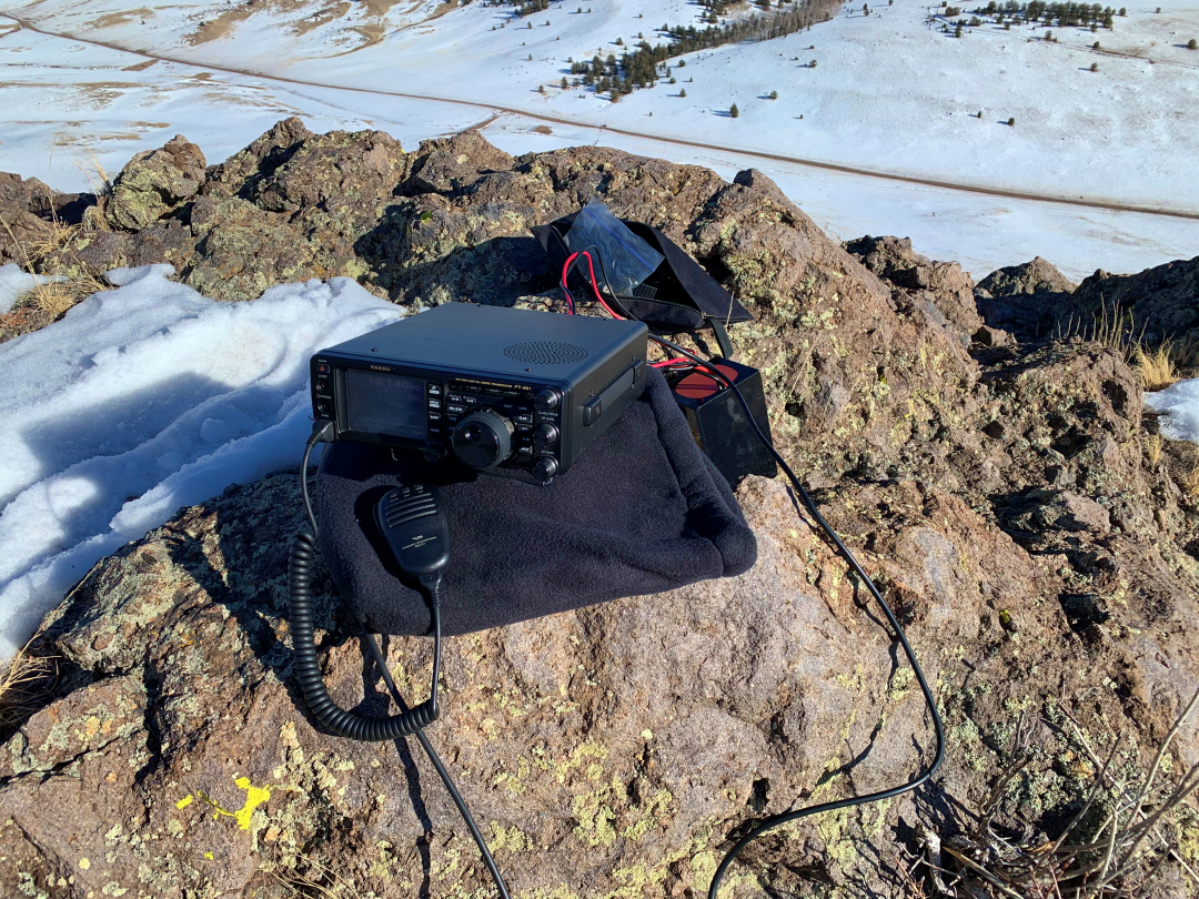 Threemile Mountain (W0C/SP-107) emerged as the activation summit because it is not too far from our cabin and accessible in the winter. (This time of year, the roads to many of our favorite summits are blocked.) For POTA, it is located in the Pike National Forest (K-4404). Because it is a short hike, I concluded that I could carry the Yaesu FT-911 and the 20 Ah Bionno battery. This would cover all the bands, give us more RF punch and still have plenty of battery capacity.