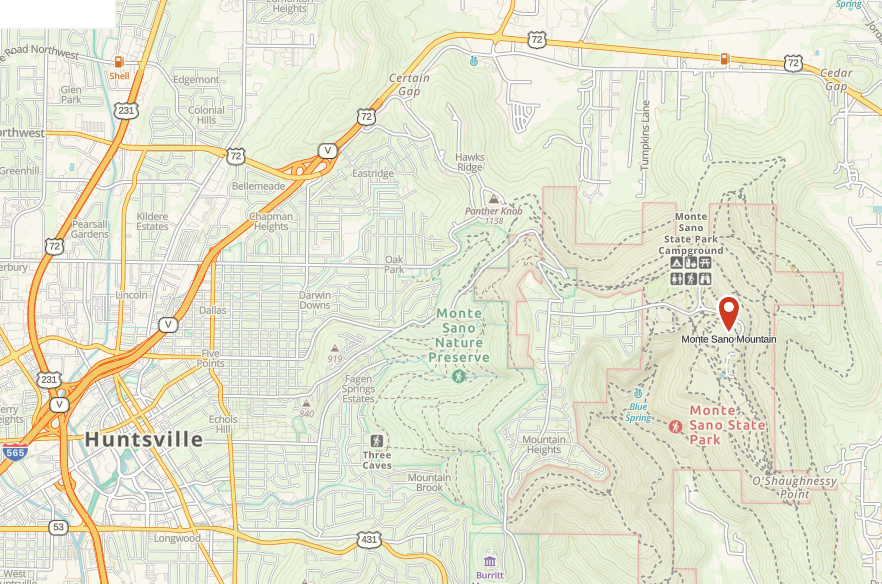 Monte Sano Mountain turned out to be a unique location because it is located in the Monte Sano State Park. The park surrounds the summit, which is broad and flat. We determined that the park campground is within the activation zone, so we camped there and did both SOTA and POTA activations.