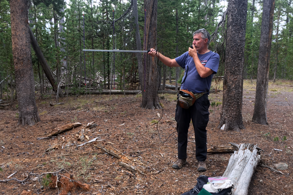 For POTA, we noted that the Continental Divide Trail National Scenic Trail (K-4558) passes through Yellowstone NP, which would allow for a double activation. The CDT has always been special to me as it passes through Colorado and provides some of the most scenic hiking in the state. It only had 15 activations listed at that time, two of those were ours from when we activated it a month earlier, in Colorado. We choose the Old Faithful area as a good place to activate Yellowstone NP ( K-0070) and the CDT. We set up near the edge of the parking lot, away from the crowds. Again it was the FT-991 driving the endfed halfwave on 20m SSB. It was midday, so we expected good 20m propagation (and a nice pileup for Yellowstone) but the band was not cooperating. We both made at least 10 QSOs for a successful activation, so we count that as a win, but the pileup never happened.