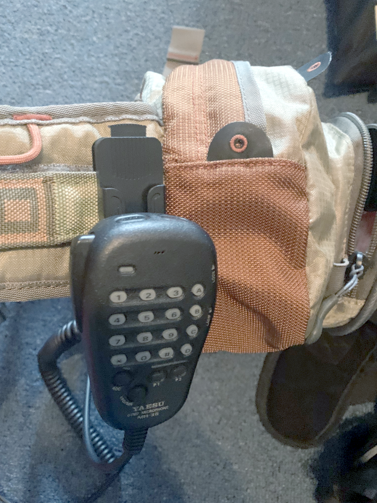 I clipped it onto my fanny pack and the Yaesu microphone hangs quite nicely on it. This clip can be used for other applications…anywhere you want to hang a microphone onto a backpack, belt, or whatever. Depending on your station configuration, this may be useful for all kinds of portable operating: SOTA, POTA, and satellites.