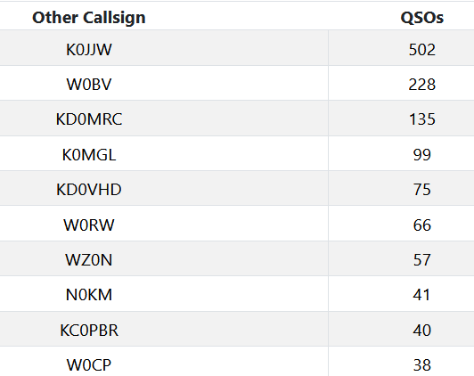 Thanks to all of the chasers who made these activations possible. Here are my top chasers: