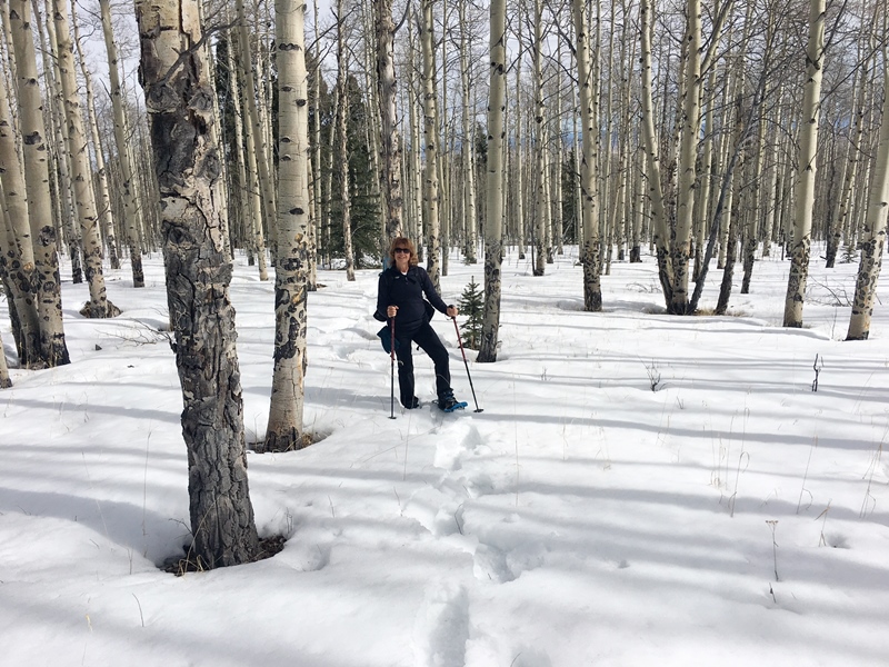 Today, Joyce KØJJW and I activated Kaufman Ridge North (W0C/SP-085) for Summits On The Air (SOTA). We’ve been on the summit before, including the first ever SOTA activation back in September of 2012. This summit is close to our cabin, so it made for a convenient hike. The mountain is not that difficult of a climb but we encountered quite a bit of snow in March, up to three feet in places, which we tromped across with snowshoes.